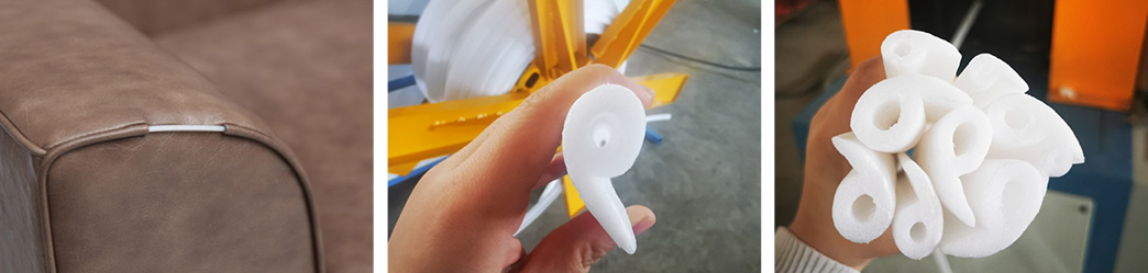 该生产线可以生产高弹力EVA 发泡材料,制品可用于家具沙发、床垫、箱包、门窗等包边条/造型条/滚边条/密封条,EVA 材料具有高弹性,回弹力佳,是产品常用的发泡制品,随着生活水平的提高势必会逐渐取代常规的海绵及PE制品,更好地提高人民的生活质量和水平.
